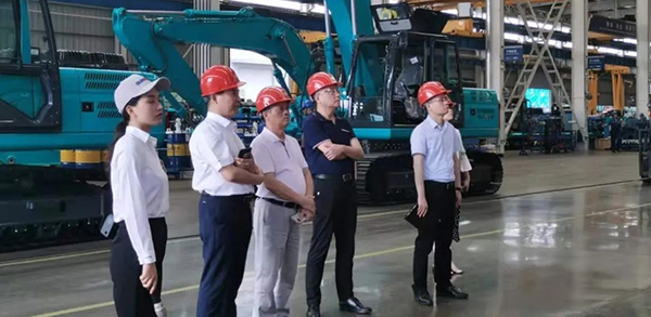 許會長一行受到了何清華董事長的熱情接待,并重走了2020年習近平總書記視察山河智能裝備股份有限公司挖掘機事業部的參觀路線。