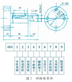 智能化模擬仿真技術,可以通過對數控機床的加工工藝路線進行仿真模擬而得出適合加工的一種軟件控制手段,結合運用成組技術可以提高數控加工編程效率。例如:根據其外形結構、技術要求和加工方法的相似性,把零件分成若干組,在每一組零件中選出一個代表性零件(它可以是實際存在的,也可以是假想的,但必須包括組內所有零件的加工要素),根據這個代表零件模擬出一套典型的工藝規程,選定和設計一組機床及工藝設備,并把它們組成一個專門的加工設計,如果模擬仿真技術成功就只需要略微做一下調整,便可以進行加工生產。例如,運用奧匹茲分類方法拆分代號為12031的零件結構,如圖1所示。該零件是一個回轉體零件, 所以第一位數是1;一端有臺階,并有緊固螺紋,所以第二位數是2;無內孔,所以第三位數是0;需要加工鍵槽,所以第四位數是3;有四個軸向孔,與其他要素無位置要求,所以第五位數是1。按成組方式來組織零件生產時,首先按照零件的結構特征、工藝特征以及加工設備的特征,將各種零件進行分組、歸類與編碼,然后建立每類零件的典型圖庫和成組加工工藝庫。