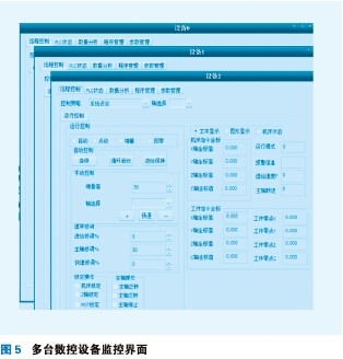 一對多的客戶端,能同時顯示和操作多個數(shù)控設備的監(jiān)控界面,雙擊需要監(jiān)控的數(shù)控設備,即能彈出對應數(shù)控設備的監(jiān)控界面,如圖5所示。