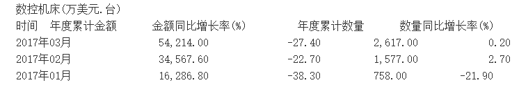2017年第一季度我國數控機床進口呈現量增價減態勢