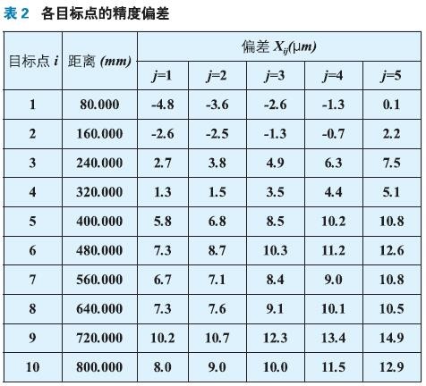 -2000(ISO 230-2:1997)對該數(shù)控重型臥式車床進(jìn)行精度可靠性實(shí)驗(yàn),在工作區(qū)間內(nèi)等間距地取10個(gè)目標(biāo)點(diǎn),每一個(gè)目標(biāo)點(diǎn)i距初始選定點(diǎn)的距離及其精度偏差如表2所示(j為測量次數(shù))。