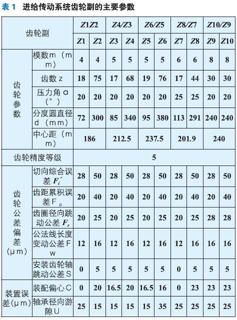 該數(shù)控重型臥式車床進(jìn)給傳動(dòng)系統(tǒng)齒輪副的主要參數(shù)如表1所示。